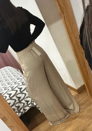 Pantalón fluido de Zara en color beige. Diseño cómodo y versátil. - Cintura elástica. - Tejido ligero.