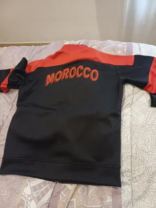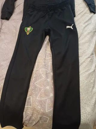 Chándal de la selección nacional de fútbol de Marruecos. - Diseño con detalles en rojo y negro. - Logo de Puma visible.