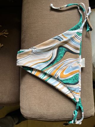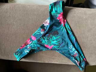 Parte inferior de bikini con un vibrante estampado tropical. - Diseño de hojas y flores exóticas. - Tejido elástico y cómodo. Es talla XL pero como tanga, no ancha.