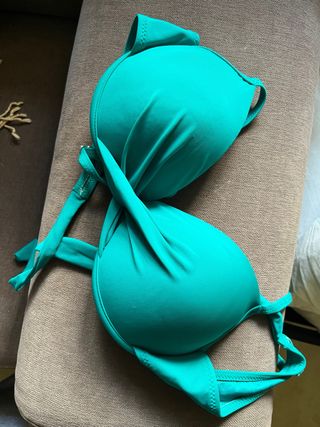 Precioso bikini en un llamativo tono verde azulado. Perfecto para disfrutar del sol y la playa. - Diseño con copas. - Tirantes ajustables para un ajuste perfecto. - Cierre de lazo.