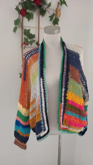 Chaqueta crochet multicolor hecha a mano
