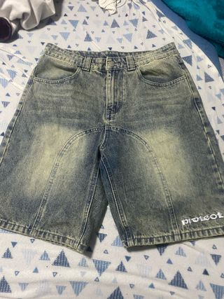 Pantalones cortos de estilo vaquero con un acabado desgastado y moderno. Perfectos para un look casual. - Diseño con lavado a la piedra. - Costuras distintivas en la parte delantera. - Pequeño bordado en el bajo.