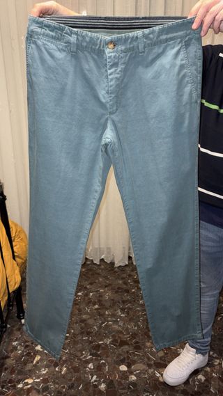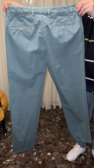 Pantalón tipo chino en color beige. Talla 40, muy cómodo, buena calidad, es de marca pero mi hermano quitó etiqueta por dentro. - Corte moderno. - Tejido de algodón y elástico - Cierre de botón y cremallera.