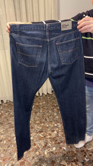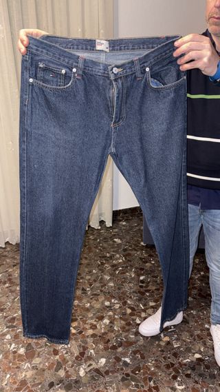 Vaqueros de corte clásico para hombre L-XL - Cierre de cremallera y botón. - Costuras en contraste.