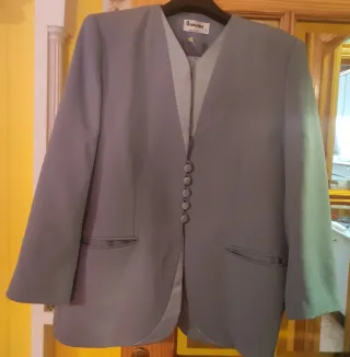 Elegante conjunto de chaqueta y pantalón. - Chaqueta de corte clásico con un botón. - Pantalón de vestir de corte recto.