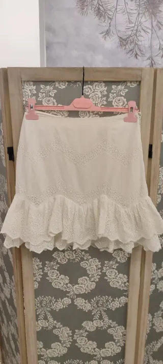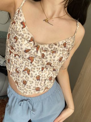 Elegante top de fiesta con un delicado diseño de encaje. - Detalle de encaje floral. - Acabado festoneado en el borde inferior.