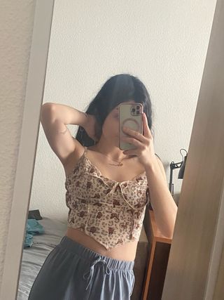 Top con estampado de mariposas y diseño animal print. - Tirantes finos. - Escote tipo bustier. - Tejido con textura.