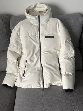 Abrigo acolchado reversible con bolsillos en ambos lados y capucha fija. Al ser reversible no tiene etiqueta de talla, mira bien las medidas, sirve hasta una talla 44. Medidas: - 40cm hombros - 52cm pecho. - 80cm largo. Prácticamente nuevo.