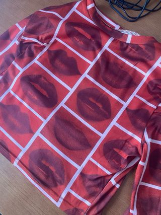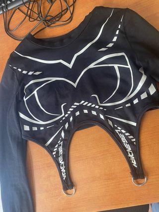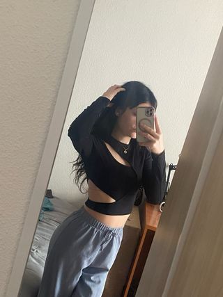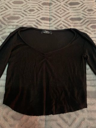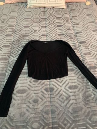 Es un top de manga larga negro asi cortito. Queda genial con todo.