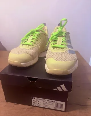 Vendo zapatillas Adidas Dropset 3 en perfecto estado. Solo usadas en una ocasión, están prácticamente nuevas. 🔹 Diseño deportivo 🔹 Cordones verde neón 🔹 Detalles de las tres franjas en color 🔹 Muy cómodas, ideales para entrenamiento en gimnasio Talla: 39 Color: Verde y amarillo Estado: Como nuevo Perfectas si buscas unas zapatillas de entrenamiento de calidad a buen precio. Escríbeme sin compromiso.