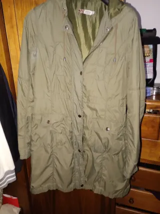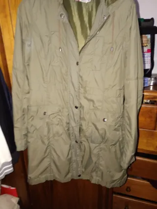 Chaqueta ligera de color verde, ideal para entretiempo. Presenta un diseño moderno y funcional. - Cierre de cremallera y botones a presión. - Bolsillos frontales con solapa. - Cordón ajustable en la cintura. - Capucha integrada.