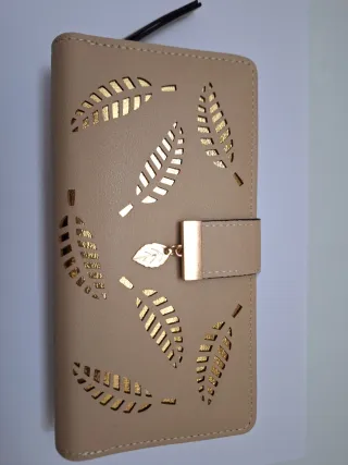 Cartera de mujer, color beige con detalles en dorado, nueva sin usar.