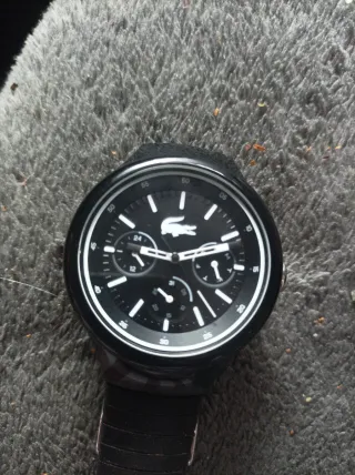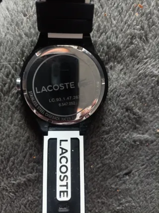 Elegante reloj de pulsera de la marca Lacoste. - Diseño moderno en color negro. - Esfera con detalles blancos y el icónico cocodrilo de la marca.