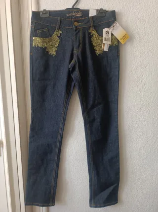 Pantalón vaquero de la marca Dereon. - Diseño de corte ajustado. - Detalle de bolsillo con adorno. - Cierre de botón y cremallera.