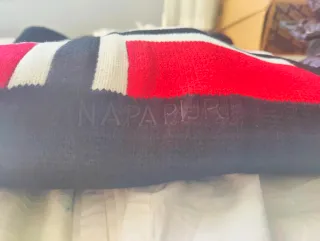 Jersey de punto Napapijri con diseño de bandera. - Color principal negro. - Detalles en rojo y blanco.