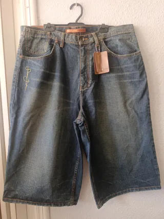 Pantalón vaquero corto de la marca Sean John. - Color azul desgastado. - Talla XXL (48/58). - Diseño con bolsillos. - Logo bordado en el lateral.