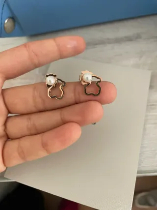Preciosos pendientes de la marca Tous con forma de oso y detalle de perla. - Diseño de oso. - Detalle de perla. - Acabado en oro rosa.