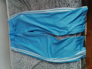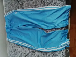 Pantalón de chándal Adidas en color azul celeste - Diseño con tres rayas blancas laterales. - Cintura con cordón ajustable y goma - Bolsillos con cremallera - Logo Adidas bordado