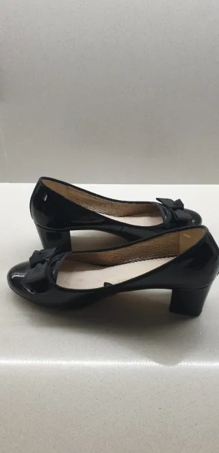Elegantes zapatos de tacón de piel y charol. - Diseño sofisticado. - Tiras finas para un ajuste seguro. - Tacón estilizado.