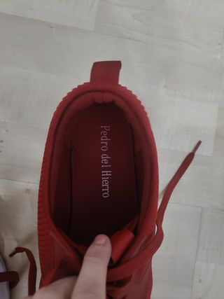 Zapatillas deportivas de la marca Pedro del Hierro en color rojo. Talla 46 Estan nuevas - Diseño moderno y cómodo. - Cierre con cordones. - Suela blanca.