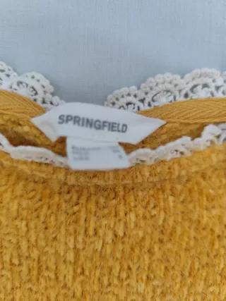 Jersey de punto fino en color amarillo de Springfield. Presenta un detalle de encaje en el cuello. - Manga larga. - Cuello redondo con encaje.