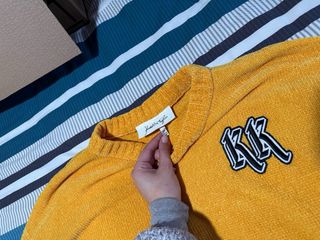 Jersey de punto en color amarillo con un detalle de las iniciales KK bordadas en la parte delantera. - Diseño de cuello redondo. - Manga larga. - Tejido suave y agradable al tacto.