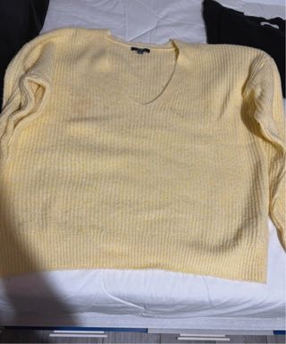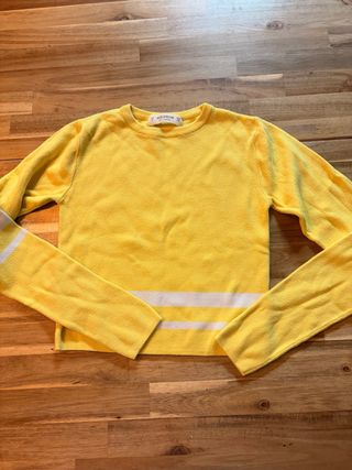 Jersey de manga larga con un diseño de bloques de color. - Banda superior negra. - Banda central amarilla. - Banda inferior blanca. - Parte inferior y mangas negras. Al tacto suave. Es Talla S, estilo oversize! La parte de atrás es exactamente igual que la de delante. Como nuevo!! Muy pocas puestas!