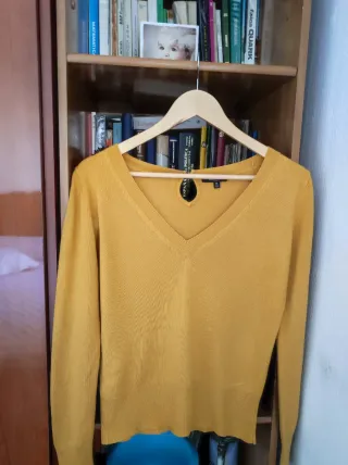 Jersey mostaza-amarillo básico. En buen estado (se vende por falta de uso- está haciendo hueco en el cajón-limpieza de armario-cosas que ya no me pongo- está haciendo hueco en el cajón) talla S marca Lefties.