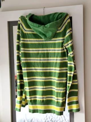 Jersey de algodón con rayas verde y amarillo. Tiene capucha y bolsillo delantero tipo canguro. - Tejido de algodón y nylon. - Con capucha.