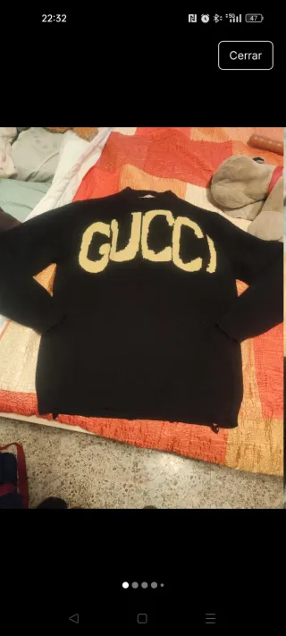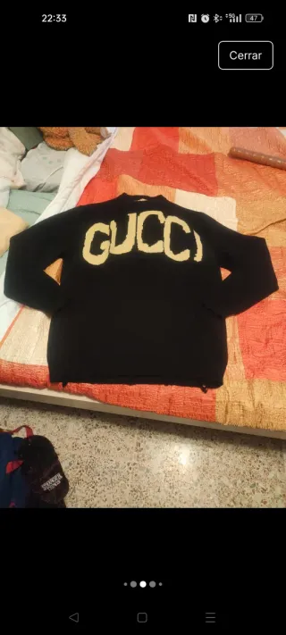 Jersey de punto negro con el logo de Gucci. - Logo de Gucci en color amarillo. - Diseño de cuello redondo. - Manga larga. Talla M