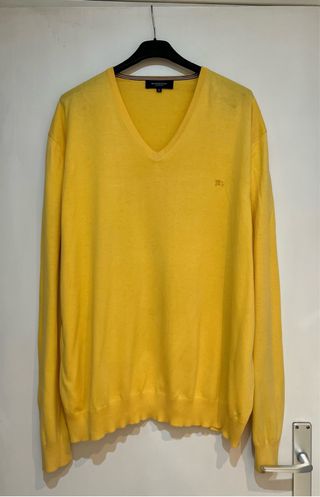 Jersey Tommy Hilfiger. 🔹 Marca: Tommy Hilfiger 🔹 Color: Amarillo 🔹 Estilo: Clásico / Vintage 🔹 Cuello redondo 🔹 Talla: XL Estado tal y como se aprecia en las fotos. Si necesitas talla, medidas o más fotos, escríbeme sin problema 😊