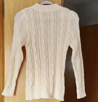 Jersey de punto con diseño de trenzas. Color beige clarito con tono amarillo - Cuello redondo. - Manga larga. - Puños y bajo acanalados.