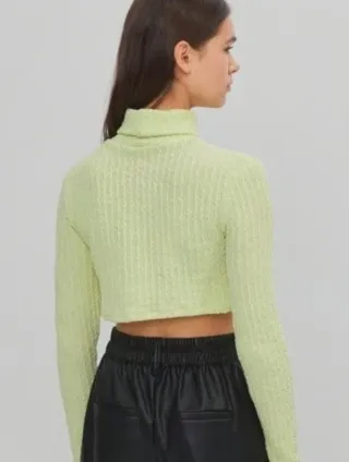 Jersey de punto con cuello alto. - Diseño cropped. - Textura acanalada. Talla S. Bershka
