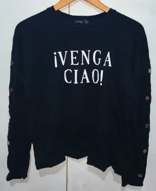 Jersey negro de Bershka con mensaje. - Diseño con botones en las mangas. - Cuello redondo.