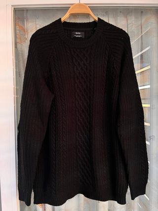 Jersey de punto en color negro de Hombre de Bershka, corte holgado con cuello redondo. Talla L. En perfecto estado. Hago envíos. Medidas: Hombros: 50 cm Axilas: 61 cm Largo: 69 cm