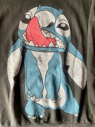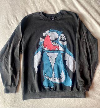 Jersey o Sudadera fina de Stitch (Disney) estilo Tie-Dye (Desgastado) color Gris. Talla: S Oversize Medidas: Largo 67cm x 53cm Ancho Letras Stitch en la espalda SOLO ENVIO. PROTECCION TOTAL.
