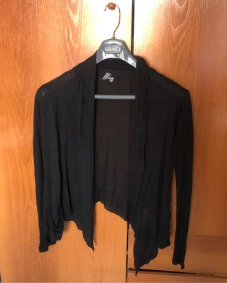 Jersey finito negro de Bershka. Usado en pocas ocasiones. Tiene bolsillos y un volante en el cuello.