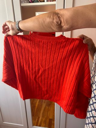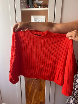 Jersey de punto rojo, tejido suave y agradable al tacto, cuello redondo y manga larga, talla s pero talla como una m, tienda bershka