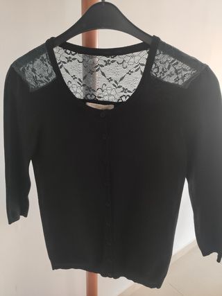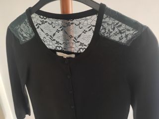 Elegante y versátil jersey negro de corte amplio y cómodo. Diseño con escote drapeado (tipo "cowl neck") que aporta un toque sofisticado y favorecedor. Mangas amplias estilo murciélago, ideales para un look relajado pero con estilo. El tejido es suave y ligero, perfecto para entretiempo o para combinar en un outfit de noche. Queda genial tanto con pantalones ajustados como con faldas. En muy buen estado.