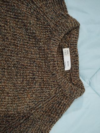 Precioso jersey de cuello alto en color beige de Bershka. Es de punto acanalado y tiene un corte cropped.