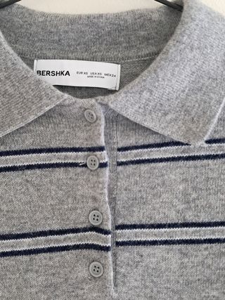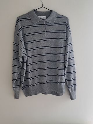 Jersey nuevo oversize de punto fino con cuello polo y rayas verticales. - Diseño de rayas finas en contraste. - Cierre de botones en la parte delantera. - Tejido suave y cómodo.