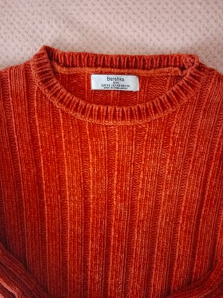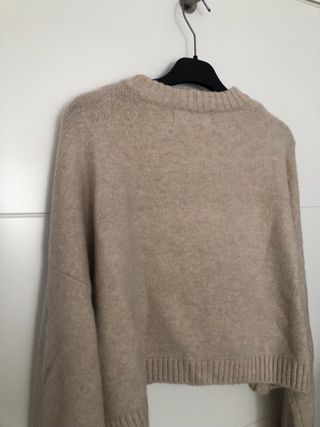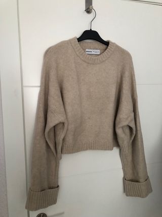 Jersey de punto de Bershka. Cuerpo amplio y mangas un poco más pegaditas. Pequeña apertura en el lateral del bajo. Muy suavito y de súper buena calidad. Puesto en una única ocasión, está nuevo. Talla M.