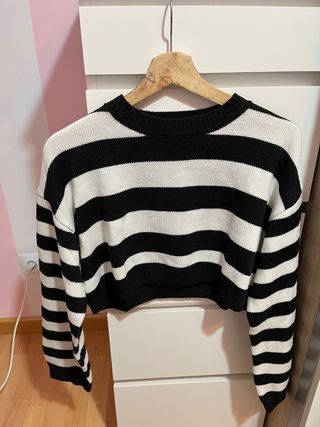Jersey de punto fino con un diseño moderno y cómodo. - Manga larga. - Cuello redondo. - Corte cropped. Se recoge en benimaclet Si compráis más cosas hago precio