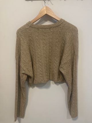 Jersey de punto fino con cuello en V. Está nuevo sin usar. - Manga larga. - Corte cropped. - Tacto suave. Medidas: - 40cm de hombros -47cm de largo
