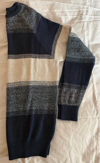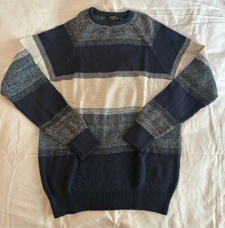 Jersey de punto con diseño de rayas horizontales en contraste. - algo usado - Diseño de rayas rojas, blancas y azul marino - Cuello redondo. - Manga larga. - no hago envío