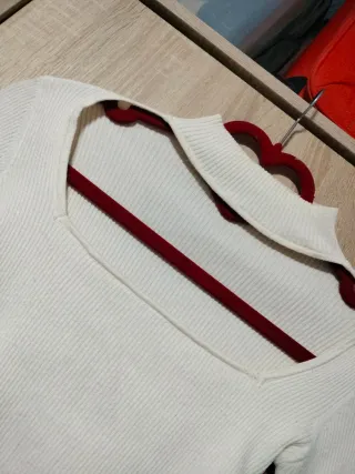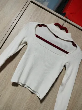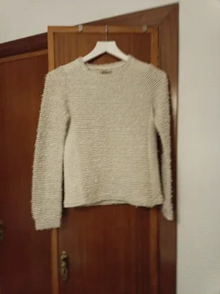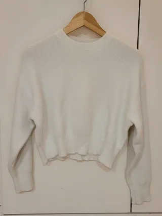 Jersey de Bershka en talla XS en color blanco roto.Es una prenda cómoda y versátil. Poco usado, en buen estado. - Tejido suave y agradable al tacto. - Diseño de cuello redondo. - Manga larga.