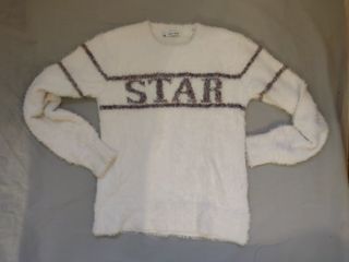 Jersey blanco con la palabra "Star". Es de pelo y es muy calentito. Es elástico, ajustado y muy cómodo. Tiene muy pocas puestas por lo que está en muy buenas condiciones.