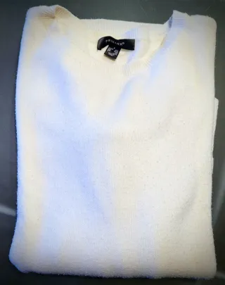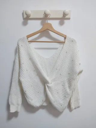 Jersey de punto fino en color blanco, con un diseño jacquard en la zona del pecho y cuello en V. - Poco uso, Buen estado. - Solo entrega a mano