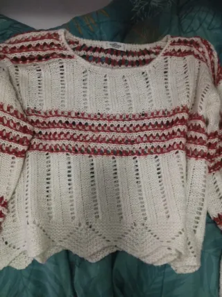 Jersey de punto rojo y blanco talla L