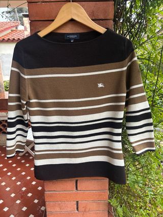 Jersey Burberry Rayas Marrón Negro Blanco Talla M